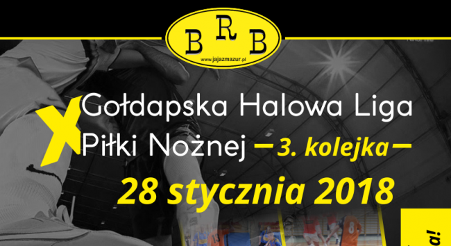 28 stycznia w hali OSiR rozegrana zostanie III kolejka Gołdapskiej Halowej Ligi Piłki Nożnej RBB JAJA Z MAZUR. Czeka nas dużo emocji i ciekawych pojedynków. Serdecznie zapraszamy do kibicowania.