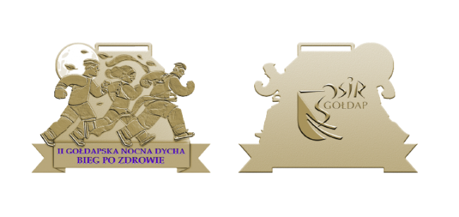 Wizualizacja medalu II Gołdapskiej Nocnej Dychy.