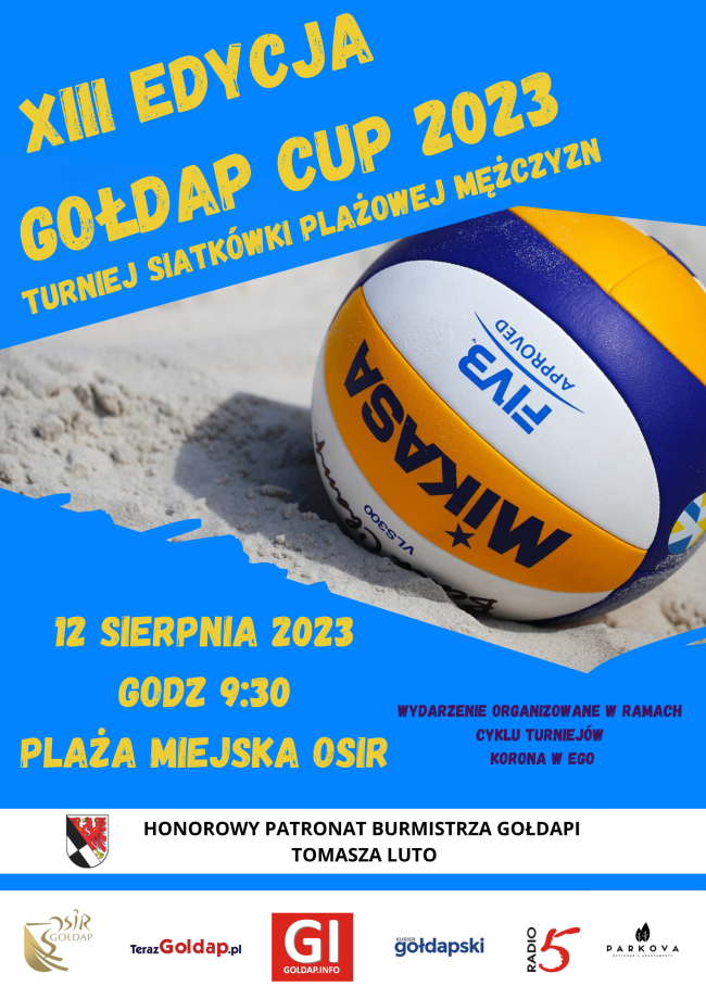 XIII Edycję Gołdap Cup „Lider w Ego” w siatkówce plażowej wygrywa para z Olsztyna Paweł Pietkiewicz i Patryk Piotr Tyszka . W turnieju ostataniecznie wzięło udział 14 par (13 par z Polski i 1 z Litwy). Turniej otworzyli Zbyszek Konobrocki Dyrektor OSiR oraz Paweł Papke – Poseł na Sejm RP. Rywalizacja zaczęła się o godzinie…