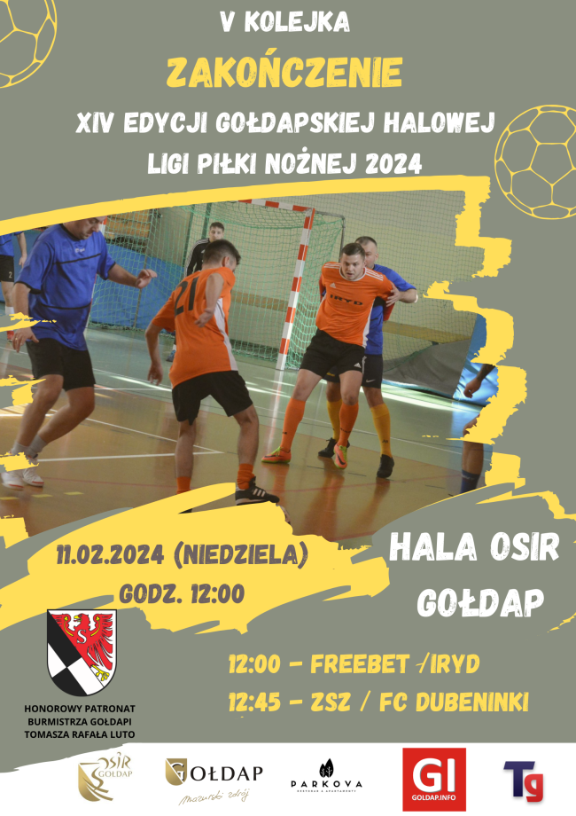 11 lutego w hali OSiR odbędzie się ostatnia V kolejka Halowej Ligi Piłki Nożnej . Mecze rozpoczną się o godzinie 12:00. Naprzeciw siebie staną drużyny: godz.12:00 FREEBET / IRYD godz.12:45 ZESPÓŁ SZKÓŁ ZAWODOWYCH / FC DUBENINKI ZAPRASZAMY DO KIBICOWANIA !!!