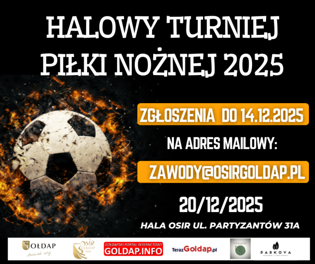 Zapraszamy drużyny do udziału w Halowym Turnieju Piłki Nożnej, który odbędzie się 20 grudnia. To świetna okazja, by zakończyć rok solidną dawką sportowych emocji i rywalizacji w przyjaznej atmosferze. 📅 Termin turnieju: 20 grudnia📩 Zgłoszenia do: 14 grudnia✉️ Adres zgłoszeń: zawody@osirgoldap.pl Nie zwlekajcie — liczba miejsc jest ograniczona. ⚽🔥 Regulamin: Halowy turniej piłki nożnej 2025…