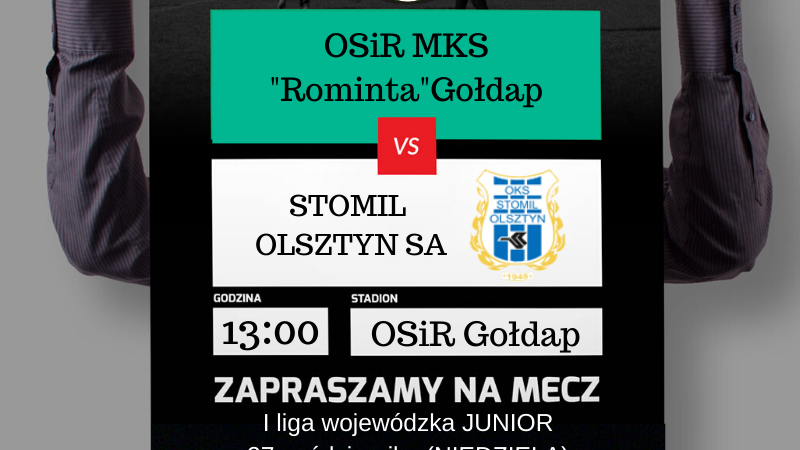 W najbliższą niedzielę na stadionie OSiR o godzinie 13:00 ostatni mecz w rundzie jesiennej rozegrają zawodnicy gr. Junior OSiR MKS Rominta Gołdap. Przeciwnikiem naszej drużyny będzie lider rozgrywek drużyna Stomilu Olsztyn SA. Zapraszamy do przybycia i kibicowania.