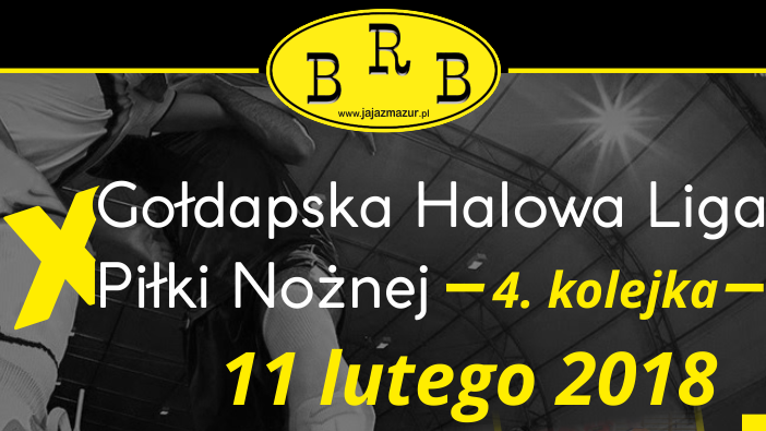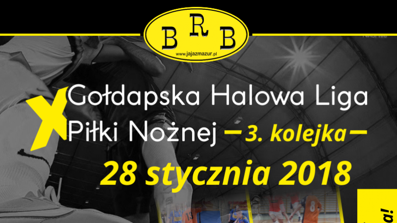 Zapraszamy na IV kolejkę Gołdapskiej Halowej Ligi Piłki Nożnej RBB JAJA Z MAZUR, która rozegrana zostanie 11 lutego (niedziela) w hali OSiR.