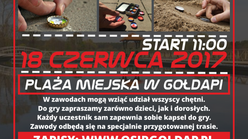 18 czerwca na boiskach Plaży Miejskiej Ośrodka Sportu i Rekreacji w Gołdapi odbędą się I Mistrzostwa Województwa Warmińsko-Mazurskiego w Kapsle. Ta popularna w latach 80 gra była bardzo popularna, grano na każdym osiedlu. Kapsle zalewało się woskiem, wykładało plasteliną lub gipsem by te miały lepszy pęd. Trasa, która będzie przygotowana na boiskach na Plaży Miejskiej…