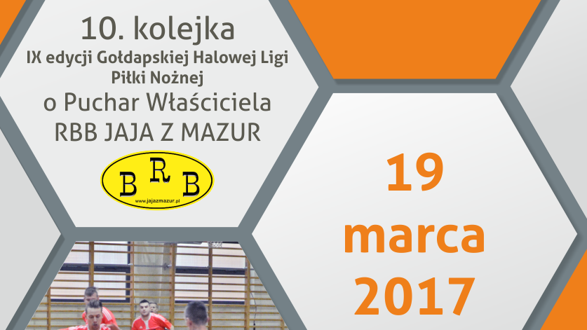 SzczegółyPrzed X już kolejka Gołdapskiej Halowej Ligi Piłki Nożnej RBB JAJA Z MAZUR. Pierwszy gwizdek już o godzinie 10:00. Zapraszamy