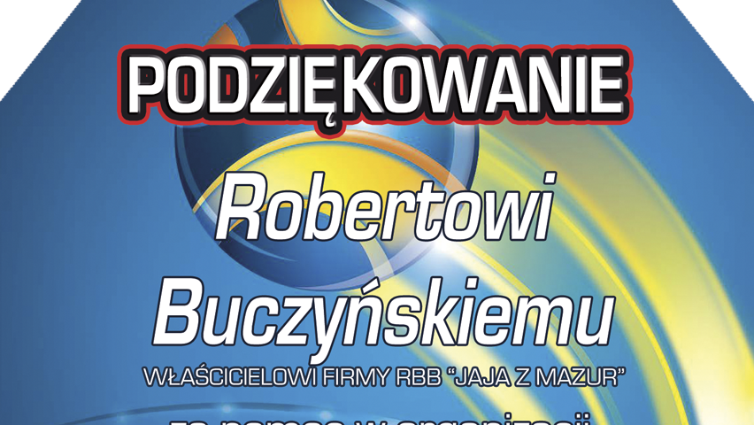 Ośrodek Sportu i Rekreacji w Gołdapi oraz zawodnicy pragną serdecznie podziękować Panu Robertowi Bernardowi Buczyńskiemu za okazane wsparcie, przy organizacji VIII edycji Gołdapskiej Halowej Ligi Piłki Nożnej w sezonie 2015/2016. Dzięki Pana hojności najlepsze, trzy drużyny otrzymały nagrody rzeczowe. Jesteśmy wdzięczni za ogromne zrozumienie i wsparcie 🙂