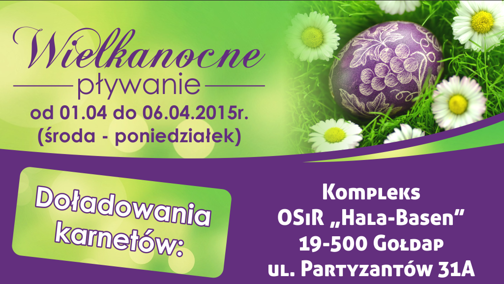 Kompleks Sportowo Rekreacyjny OSiR informuje o dostępności w czasie Świąt Wielkanocnych.