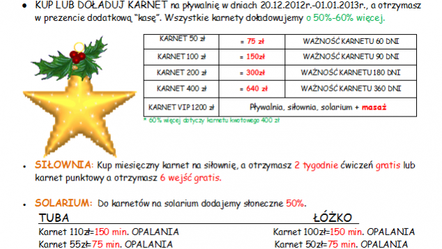 Zdrowych, pełnych rodzinnego ciepła świąt Bożego Narodzenia oraz samych radosnych dni i spełnienia wszystkich marzeń w roku 2013 życzy Marek Kuskowski Dyrektor Ośrodka Sportu i Rekreacji w Gołdapi wraz z pracownikami
