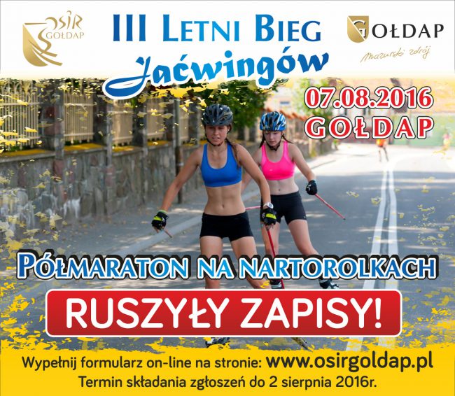 III Letni Bieg Jaćwingów na nartorolkach zostanie rozegrany w Gołdapi w dniu 7 sierpnia (niedziela) . Zawodniczki i zawodnicy będą mieli do pokonania trasę półmaratonu o długości 21,097 km (2.5 pętli po 8.4km). Początek zawodów zaplanowany jest na godzinę 12.00. Start i meta umiejscowione będą w centrum miasta przy Placu Zwycięstwa. Podobnie jak w latach…