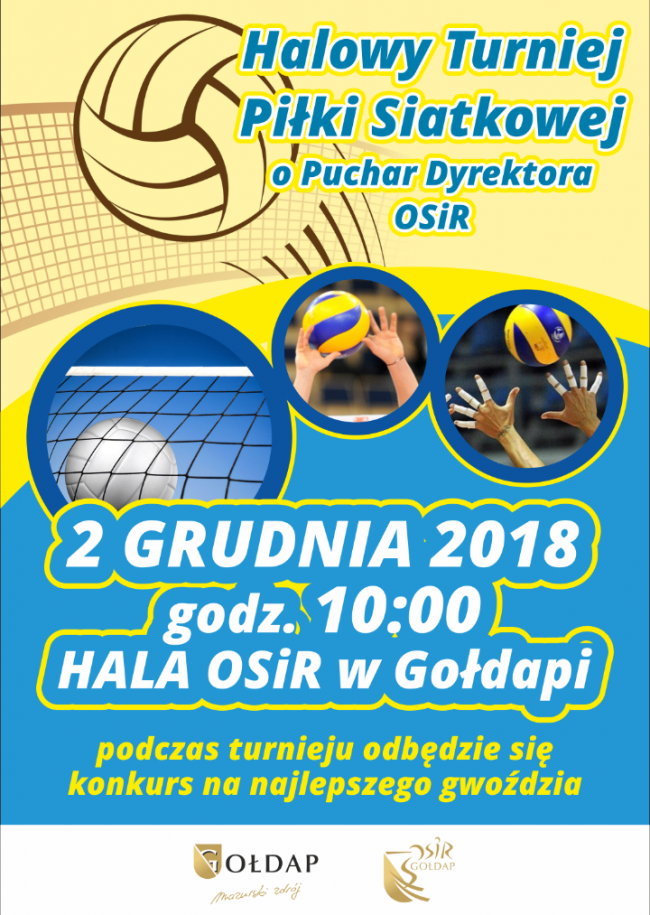 Serdecznie zapraszamy do przybycia i kibicowania w niedzielnym Turnieju Piłki Siatkowej o Puchar Dyrektora OSiR w Gołdapi. W turnieju zagrają drużny: Grupa 1. 1. Renifer Gołdap 2. Banie Mazurskie 3. Dziadki 4. UKS Jantar Gołdap (Dziewczęta) Grupa 2. 1. JW 4808 Gołdap 2. Natura 2000 3. Legends Olsztyn 4. UKS Jantar Boisko nr.1…