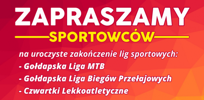 Ośrodek Sportu i Rekreacji w Gołdapi serdecznie zaprasza Dyrektorów szkół oraz wyróżnionych uczniów na uroczyste zakończenie lig sportowych.