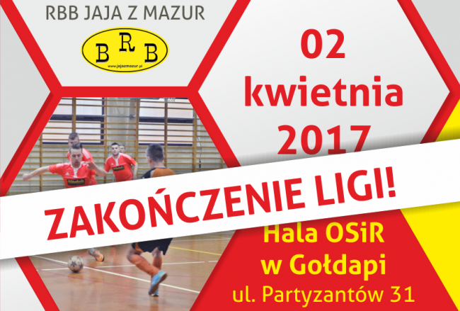 2 kwietnia w hali Ośrodka Sportu i Rekreacji rozegrano ostatnią kolejkę Gołdapskiej Halowej Ligi Piłki Nożnej RBB JAJA Z MAZUR. Z zaplanowanych 8 spotkań rozegrano 5. W pierwszym spotkaniu Nord-Ost Gołdap gładko pokonał drużynę Eskulapy. W drugim meczu doszło do konfrontacji drużyn Iryd Gołdap i JW 4808 I Gołdap. Drużyna Irydu miała do rozegrania w…