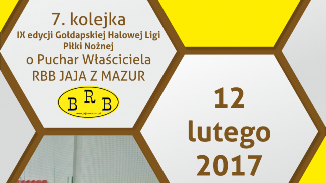 Ośrodek Sportu i Rekreacji w Gołdapi serdecznie zaprasza na VII kolejkę Gołdapskiej Halowej Ligi Piłki Nożnej RBB JAJA Z MAZUR, która odbędzie się w dniu 12 lutego 2017 w hali OSiR.
