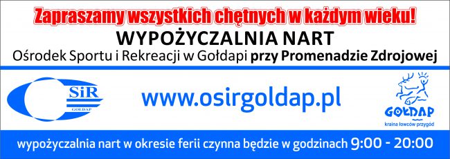 W dniu dzisiejszym odbyły się pierwsze zajęcia bezpłatnej Akademii Narciarskiej organizowanej przez Ośrodek Sportu i Rekreacji. Zajęcia odbyły się na stadionie OSiR, a wzięło w nich udział 26 osób. Kolejne zajęcia Akademii Narciarskiej odbędą się w poniedziałek 26 stycznia. 9:00 – 9:50 wydawanie sprzętu narciarskiego (wypożyczalnia przy Promenadzie Zdrój) 10:00 przejście na stadion 10:10 początek…