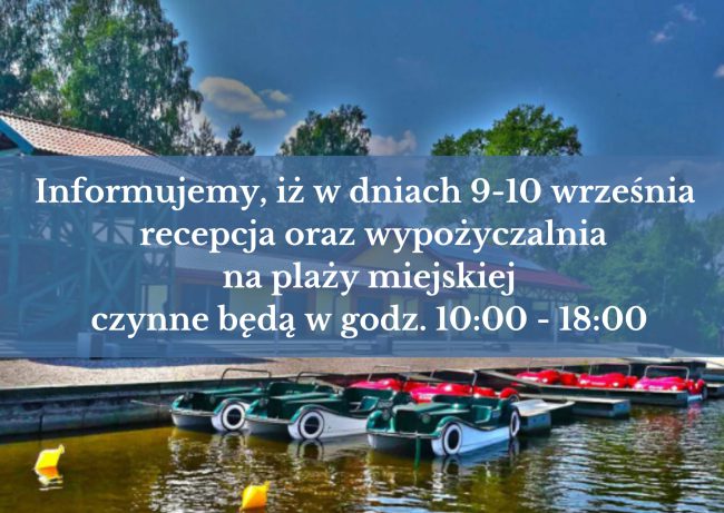 WYPOŻYCZALNIA NA PLAŻY MIEJSKIEJ CZYNNA 9-10 WRZEŚNIA