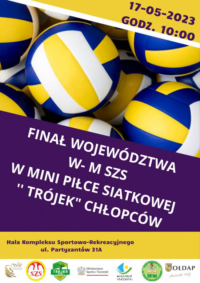Warmińsko-Mazurski Szkolny Związek Sportowy w Olsztynie wraz z Ośrodkiem Sportu i Rekreacji w Gołdapi, Gołdapskim SZS, Szkołą Podstawową nr.3 oraz UKS Trójka zapraszają na Finał Województwa W-M SZS w Mini Piłce Siatkowej ”Trójek” Chłopców, który odbędzie się 17-05-2023 r. w Hali OSiR ul. Partyzantów 31A. Rozpoczęcie zmagań o godz.10:00 . Wszelkich informacji udziela Łukasz Tarasiewicz:…