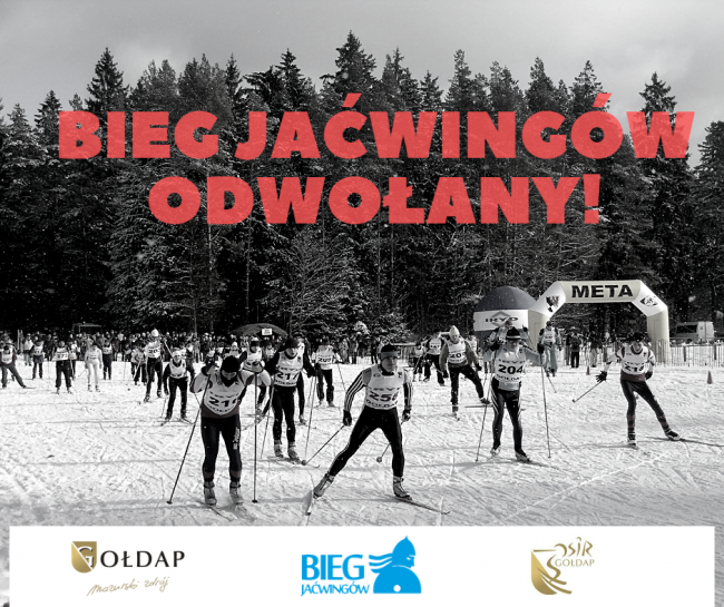 Ośrodek Sportu i Rekreacji informuje, że warunki pogodowe (brak odpowiedniej warstwy pokrywy śnieżnej) nie pozwalają na rozegranie Narciarskiego Biegu Jaćwingów. Informujemy zatem, że jesteśmy zmuszeni odwołać zawody. O wszelkich zmianach będziemy informować na naszej stronie www.osirgoldap.pl na naszym profilu fb oraz na stronie www.biegjacwingow.pl