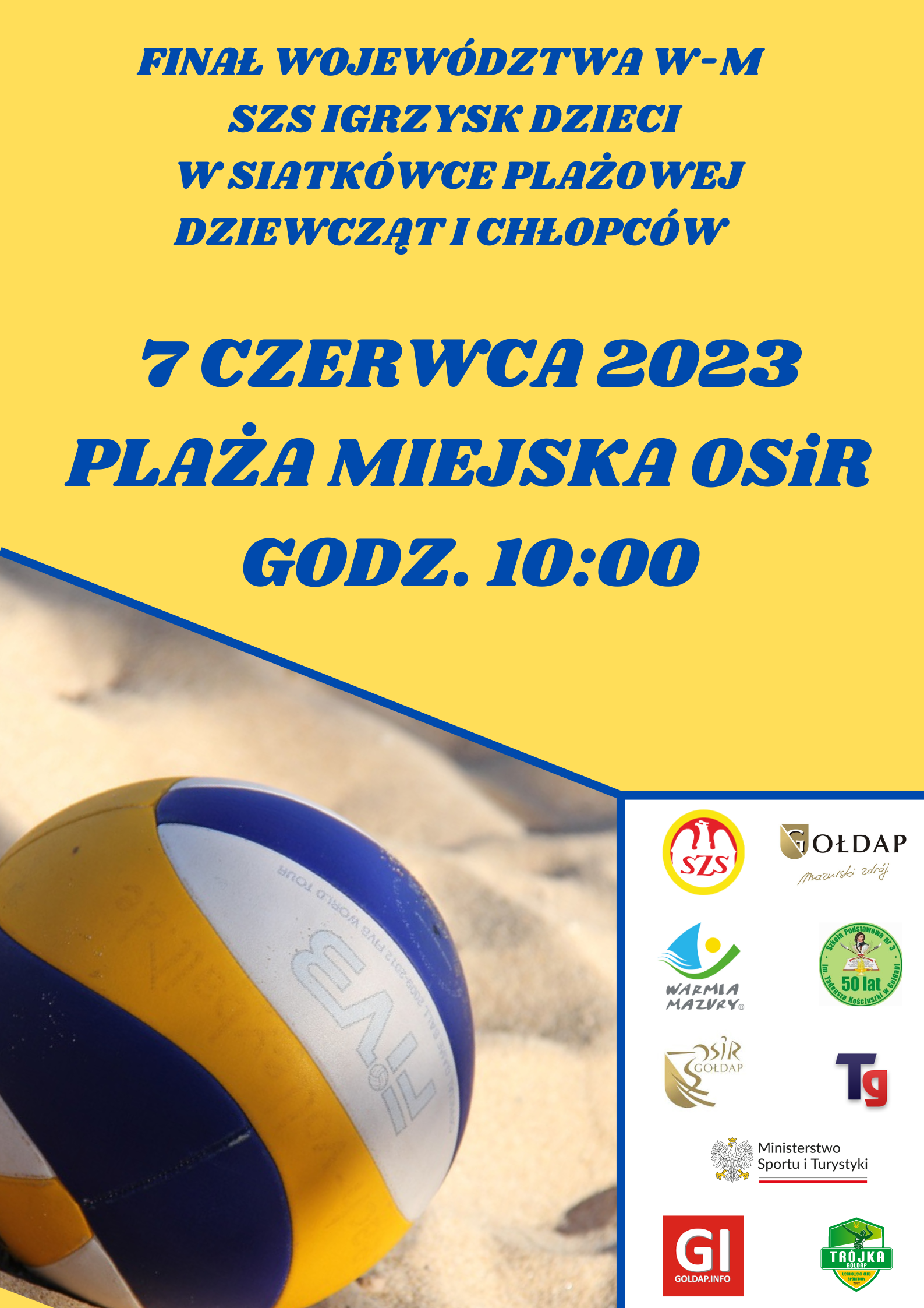 7 czerwca na boiskach siatkarskich na Plaży Miejskiej zostanie rozegrany Finał Województwa W-M Szkolnego Związku Sportowego w Siatkówce Plażowej Dziewcząt i Chłopców 🏐 Jesteśmy współorganizatorami tego wydarzenia 🙂