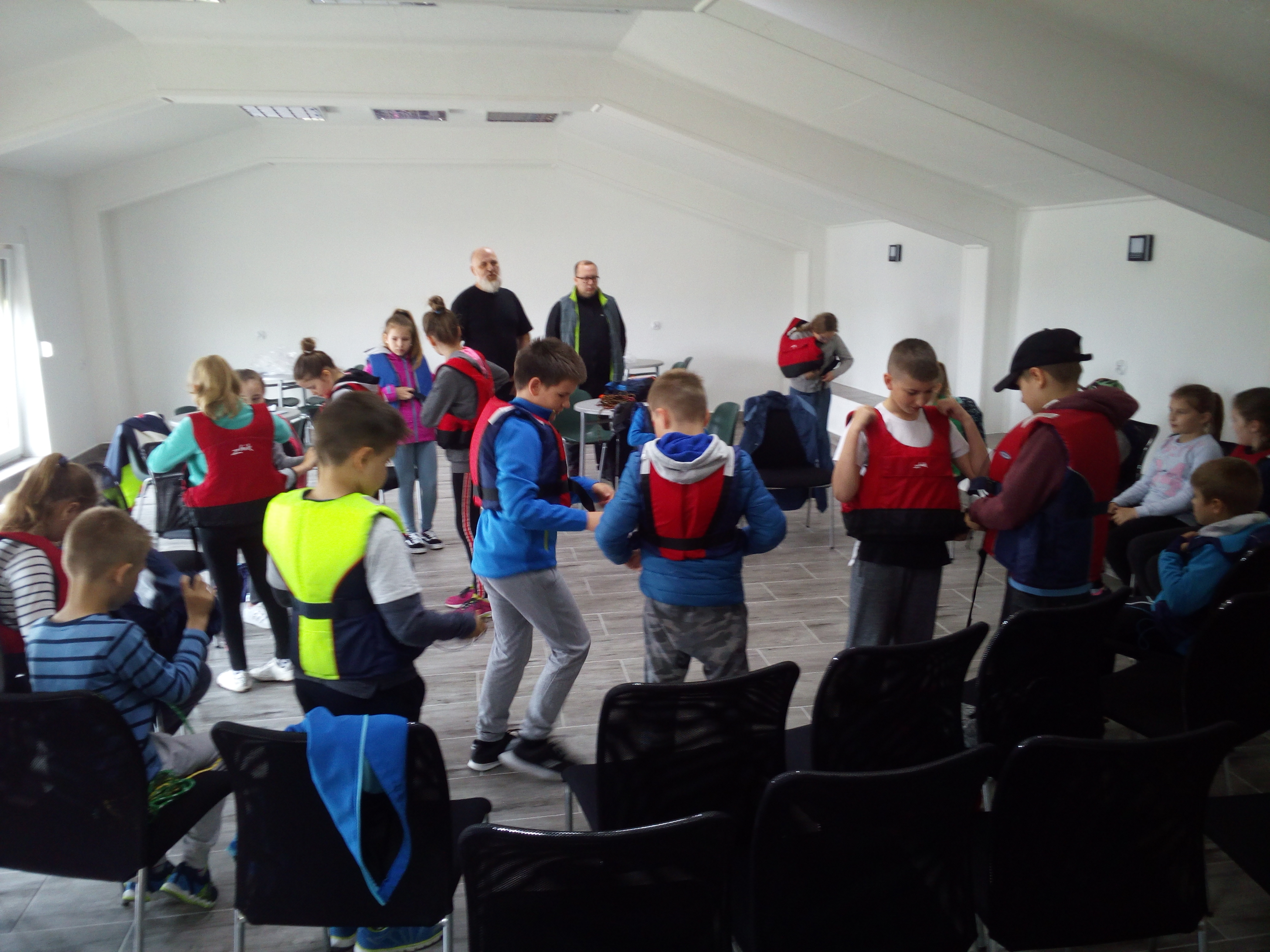 Dzieciom żeglującym w szkółce żeglarskiej do żeglowania zalecamy kryte obuwie o jasnej, gumowej podeszwie ( typu adidasy, trampki ). Do żeglowania nie nadają się buty crocsy, sandały z odkrytymi palcami, balerinki, oraz buty o śliskiej podeszwie. Nie wolno również żeglować w kaloszach, gdyż w razie wywrotki działają one w wodzie jak kotwice.
