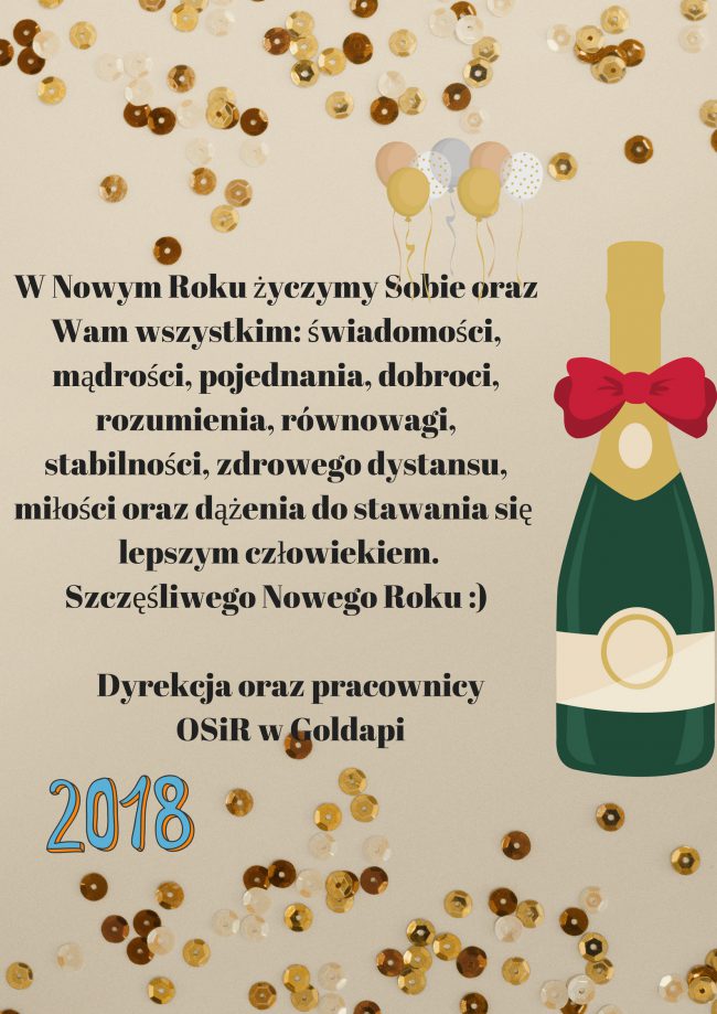 Ośrodek Sportu i Rekreacji w Gołdapi informuje, że w dniu 31 grudnia 2017 (niedziela) Kompleks Hala-Basen OSiR jest nieczynny. Do korzystania z naszych usług zapraszamy w dniu 1 stycznia 2018 w godzinach 14:00 – 22:00. Za utrudnienia przepraszamy.