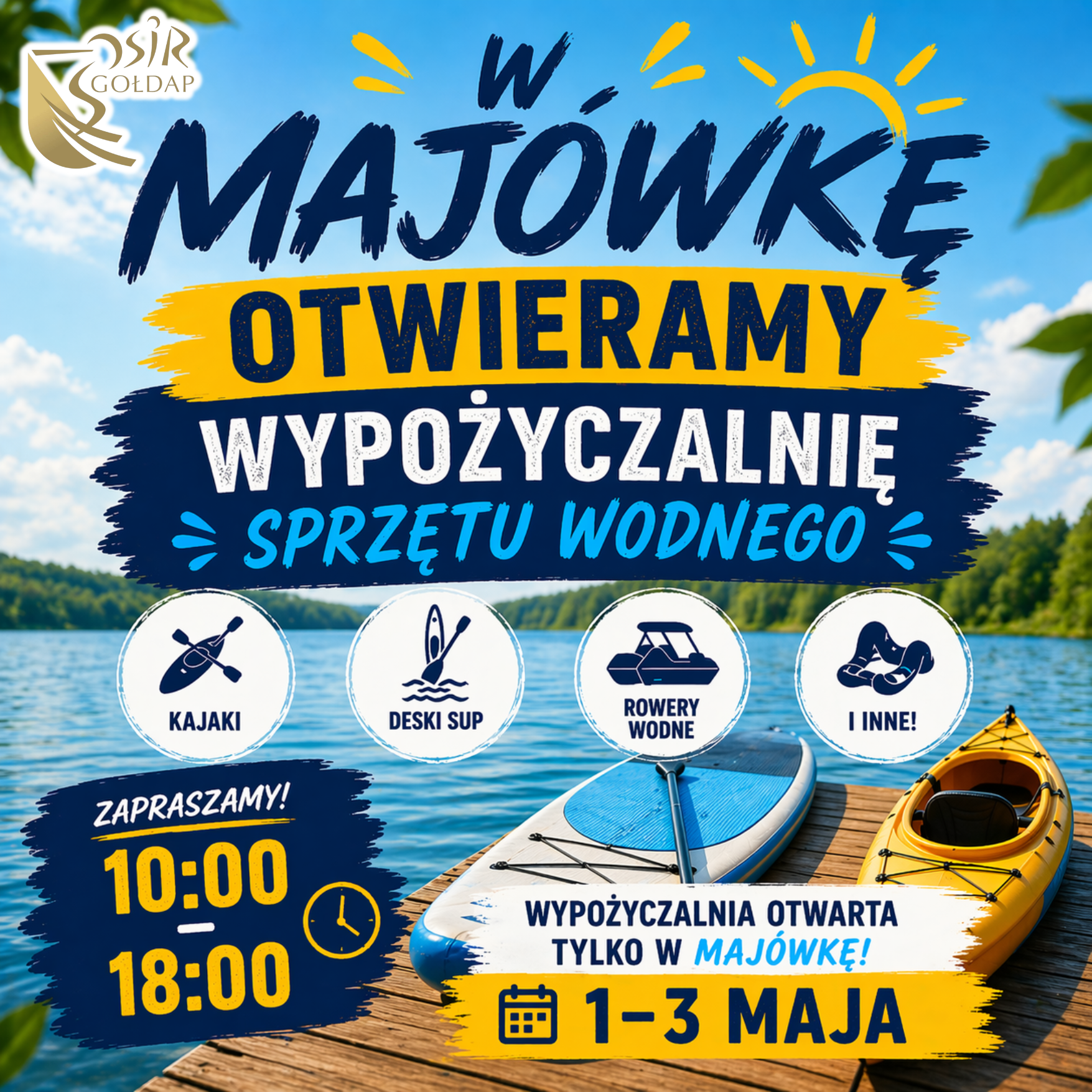 W majówkę zapraszamy do skorzystania z naszej wypożyczalni sprzętu wodnego.
