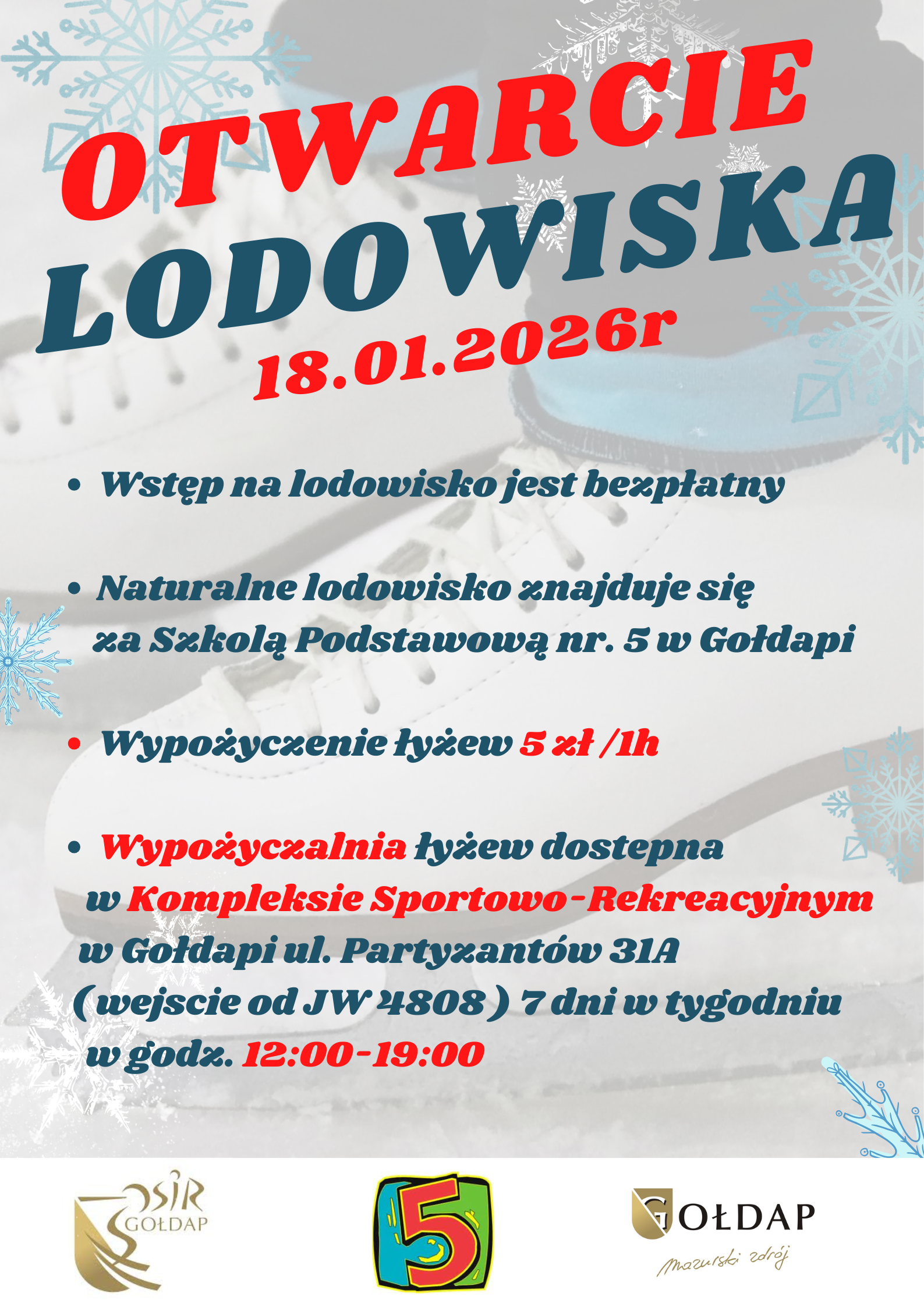 Rusza nasze lodowisko wraz z wypożyczalnią łyżew.